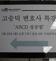| [서울사이버대학교] 사회복지학부 고승덕변호사 초청 'ABCD성공법' 특강 주최 (0) | 2014.01.15 |