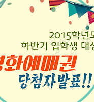 | 2015 하반기 신/편입생 영화예매권 당첨자 발표! (0) | 2015.07.23 |