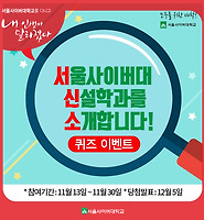 | 서울사이버대 신설학과 퀴즈 이벤트 (1) | 2017.11.13 |