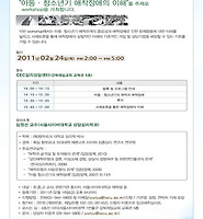 | [심리상담센터]"아동,청소년기 애착장애의 이해" 워크숍 개최 안내 (0) | 2011.02.21 |