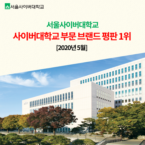 서울사이버대학교, 사이버대학교 부문 2020년 5월 브랜드 평판 '1위' , 5개월 연속 1위! 본문
