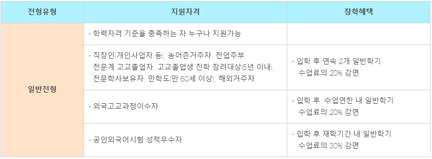주부, 직장인, 개인사업자 장학금 등