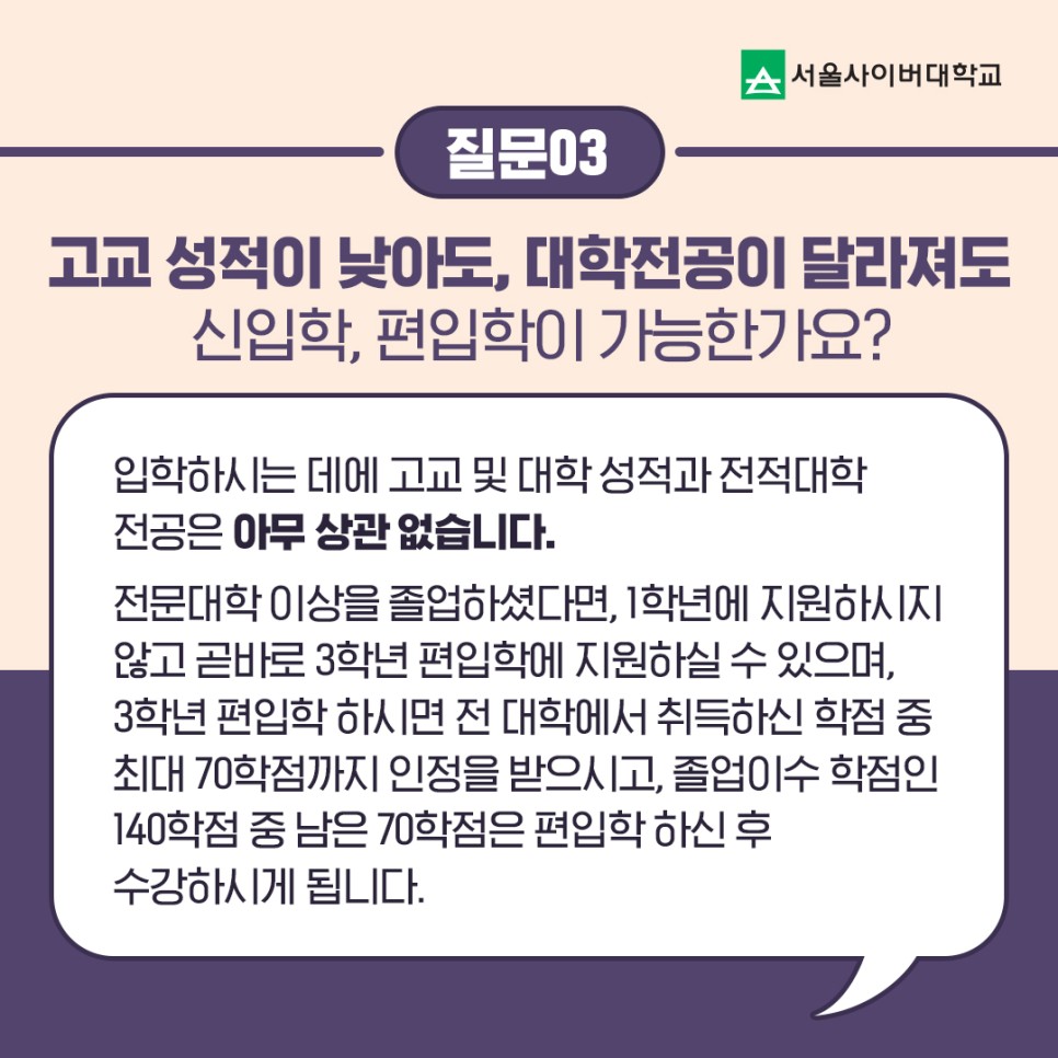사이버대학교 지원자들의 최다 궁금증! 서울사이버대학교가 답해 드립니다! 본문