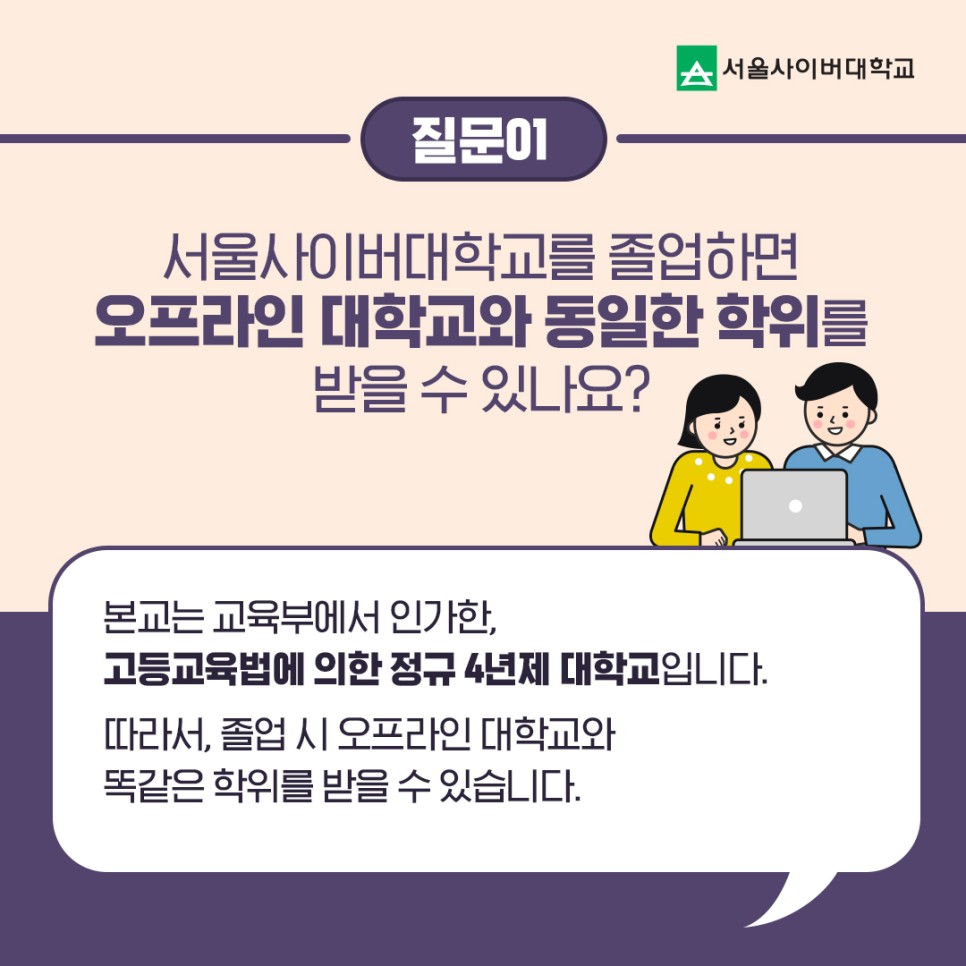 서울사이버대학교를 졸업하면 오프라인 대학교와 동일한 학위를