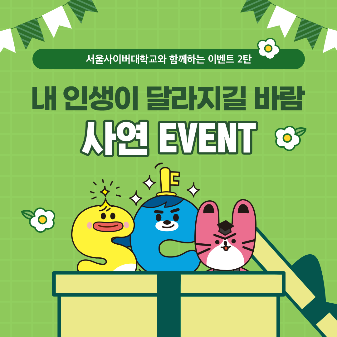 NO.1 서울사이버대학교와 함께하는 이벤트 2탄! 내 인생 달라지길 바람 EVENT (~12/30) 본문