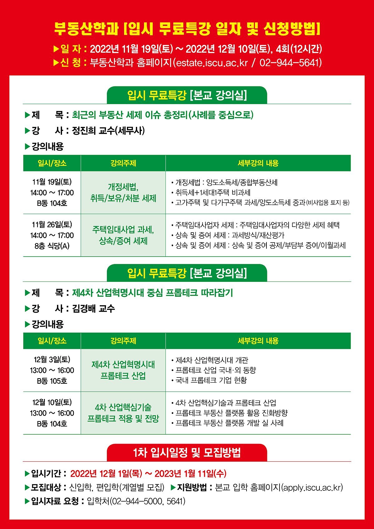 NO.1 서울사이버대학교 부동산학과 입시 12월 무료특강 신청 안내! 본문