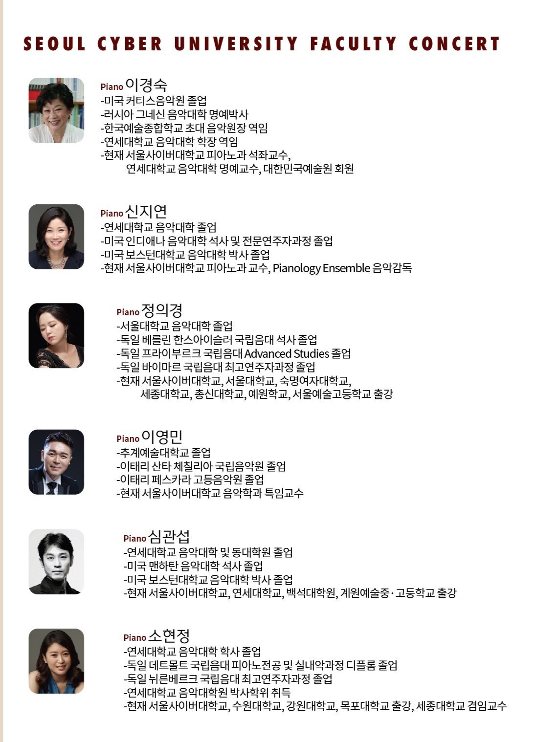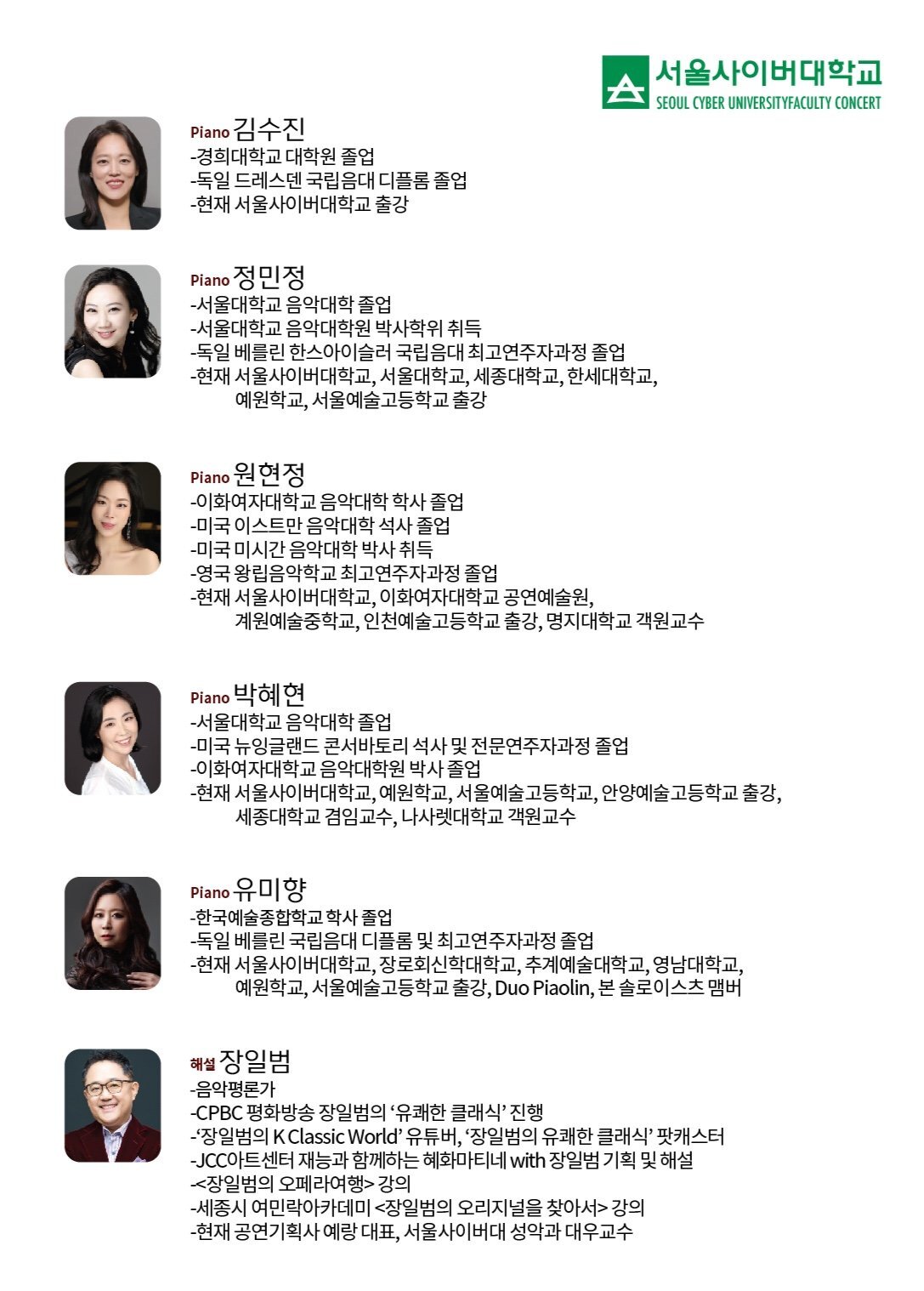 서울사이버대학교 피아노과 교수님들이