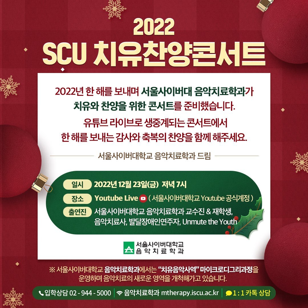 서울사이버대학교, 한 해 마무리를 위한 2022 SCU 치유찬양콘서트 개최 본문