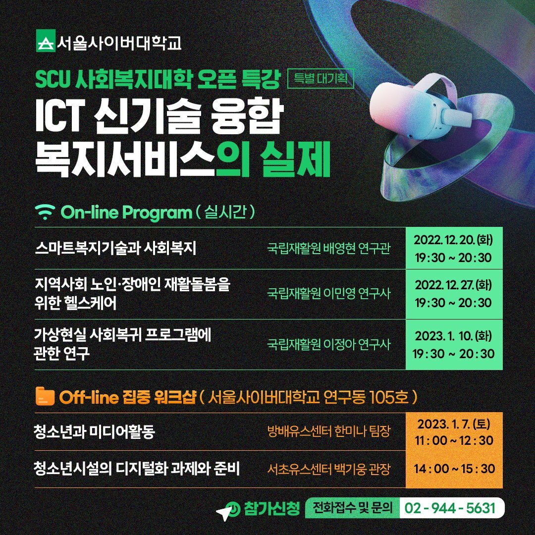 NO.1 서울사이버대학교 사회복지대학, 동계 특별대기획 릴레이 특강 실시! 본문