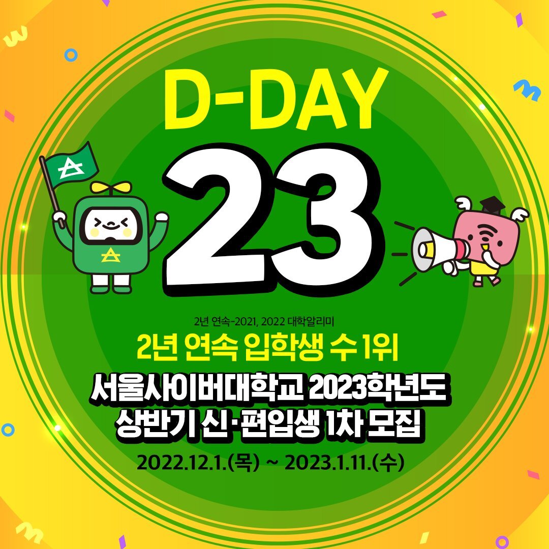 NO.1 서울사이버대학교 2023학년도상반기 신·편입생 1차 모집 D-day 23 본문