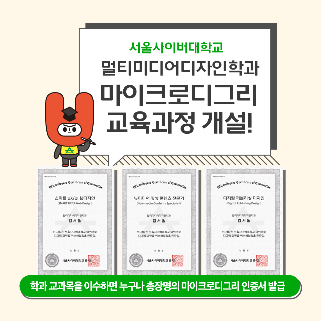 멀티미디어디자인학과 마이크로디그리 교육과정 개설! 본문