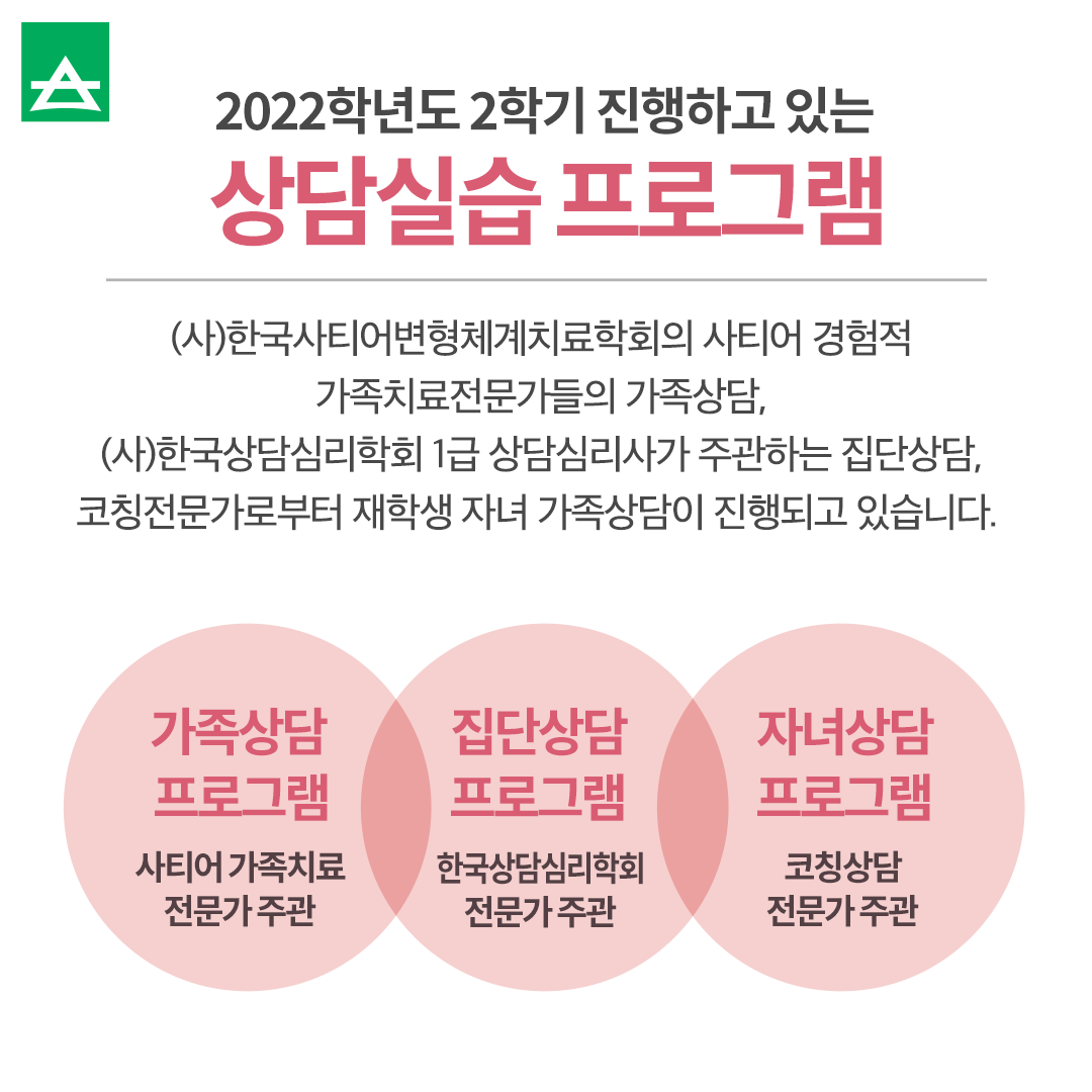 | 서울사이버대학교 가족코칭상담학과 상담실습 프로그램을 제공합니다! (0) | 2022.12.22 |