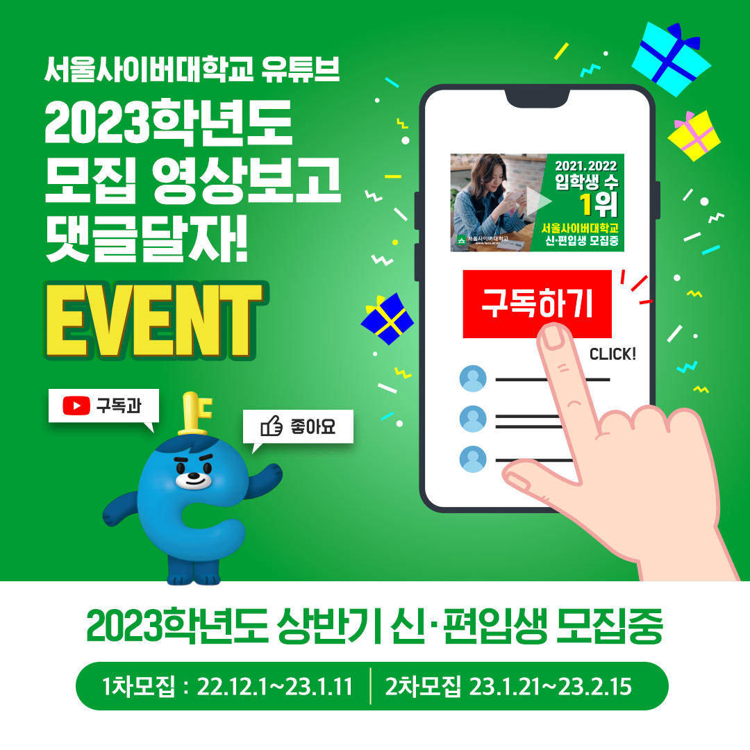 서울사이버대학교 공식 유튜브, 2023학년도 신·편입생 모집영상 EVENT! 본문