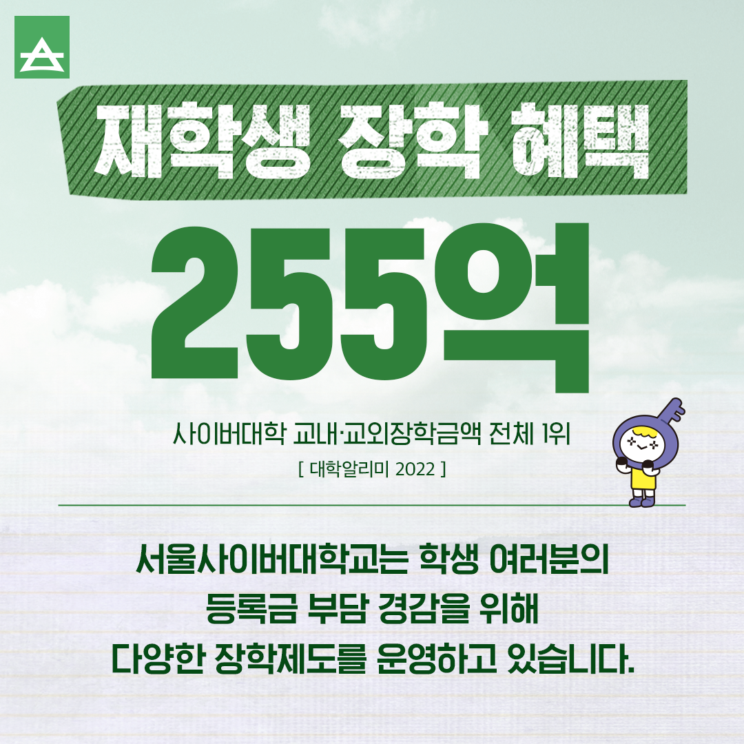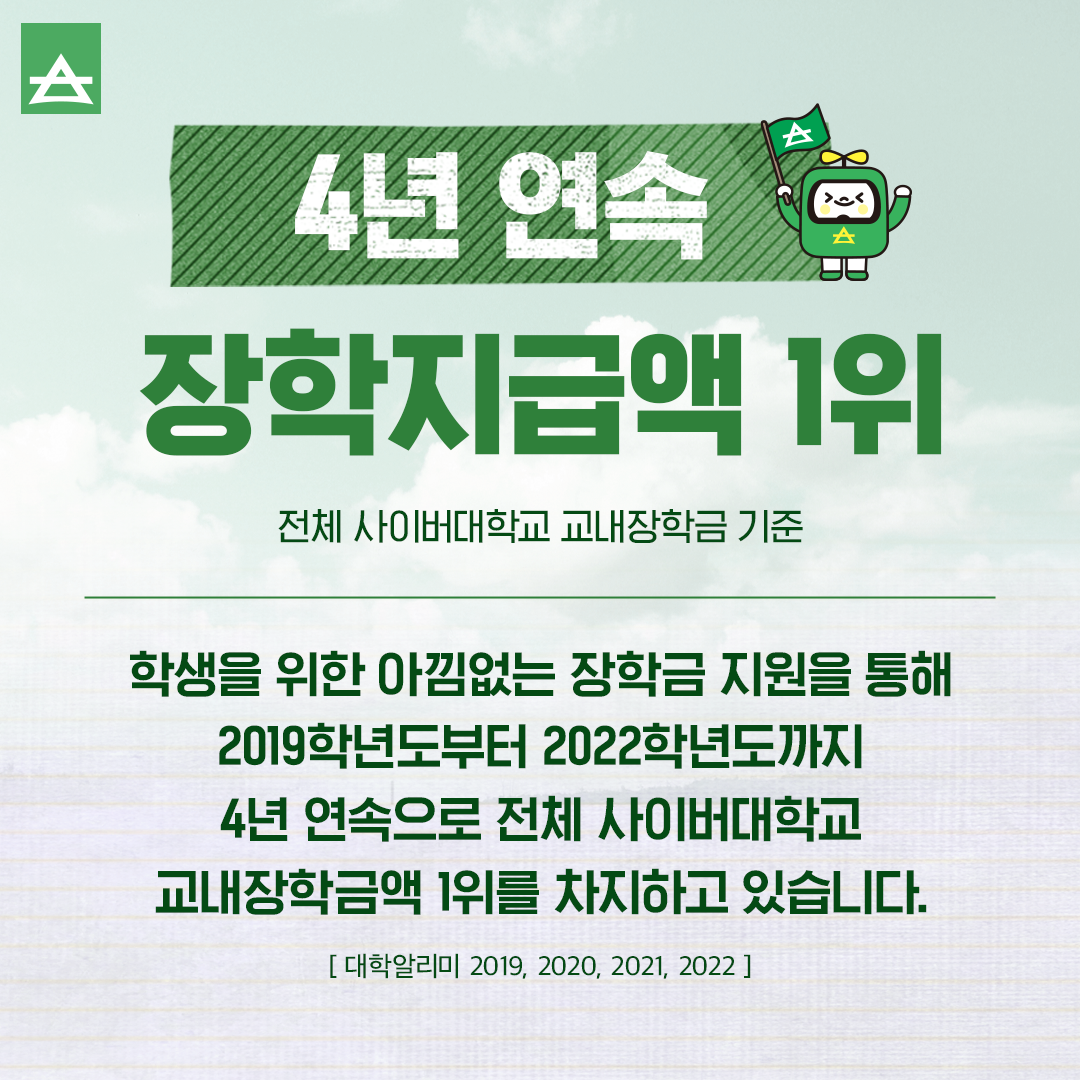 NO.1 서울사이버대학교 4년 연속 사이버대 중 교내 장학금액 1위 본문