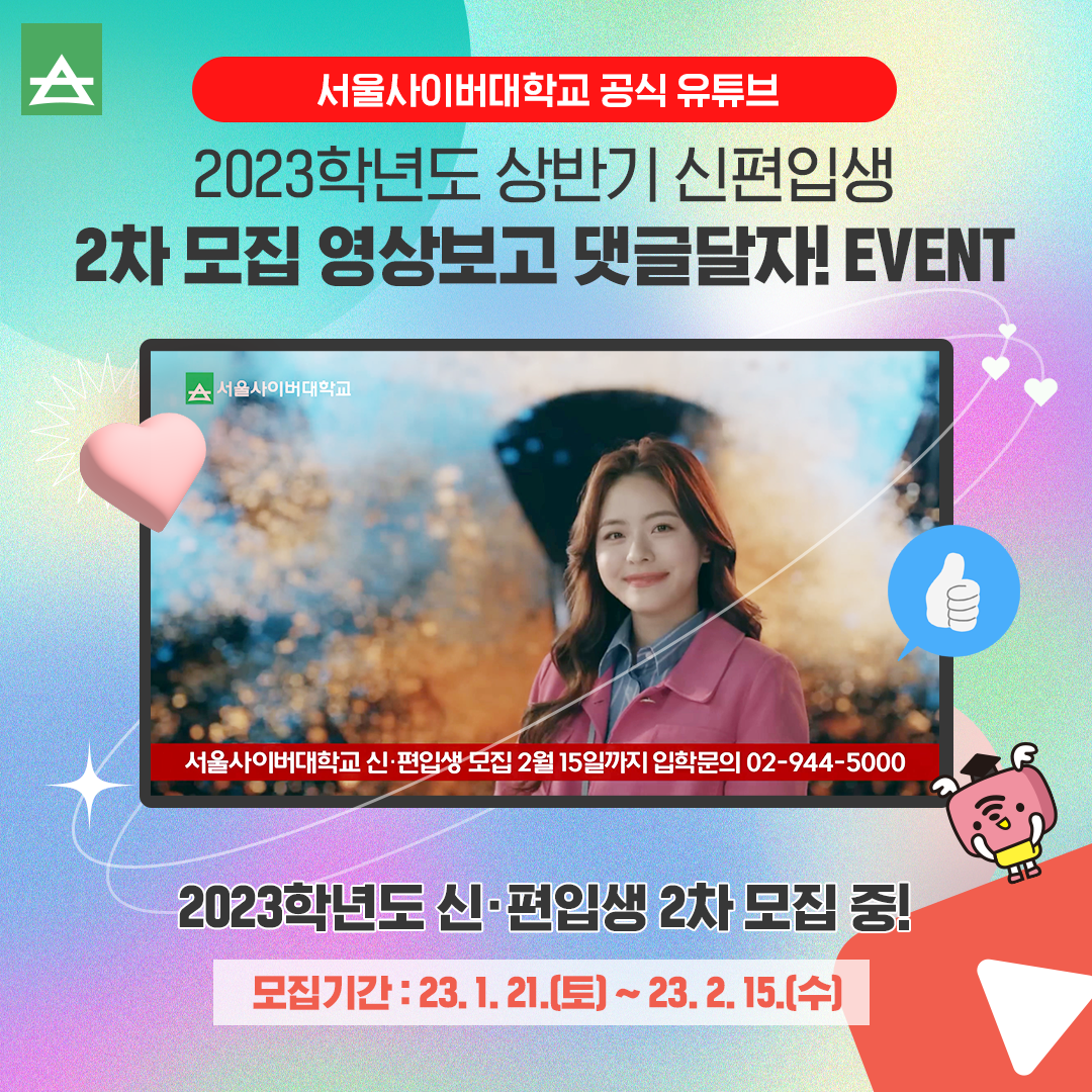 서울사이버대학교 공식 유튜브, 2023학년도 신·편입생 2차 모집영상 EVENT! 본문