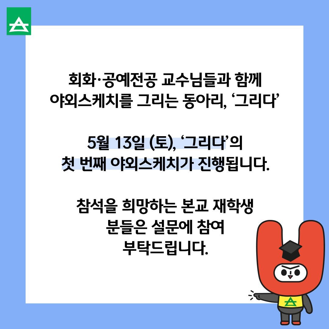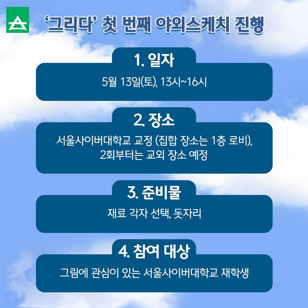 서울사이버대학교 회화·공예전공 동아리 ‘그리다‘ 첫 번째 야외스케치 진행✅ 본문