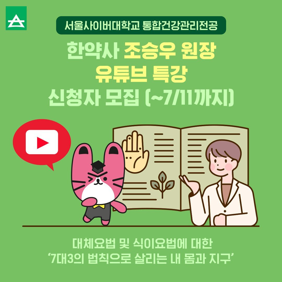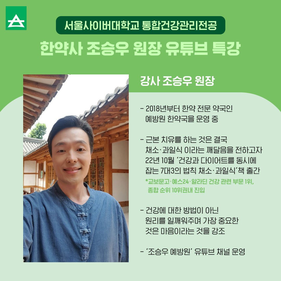 통합건강관리전공 한약사 조승우 원장 유튜브 특강 신청자 모집 (~7/11까지) ✅ 본문