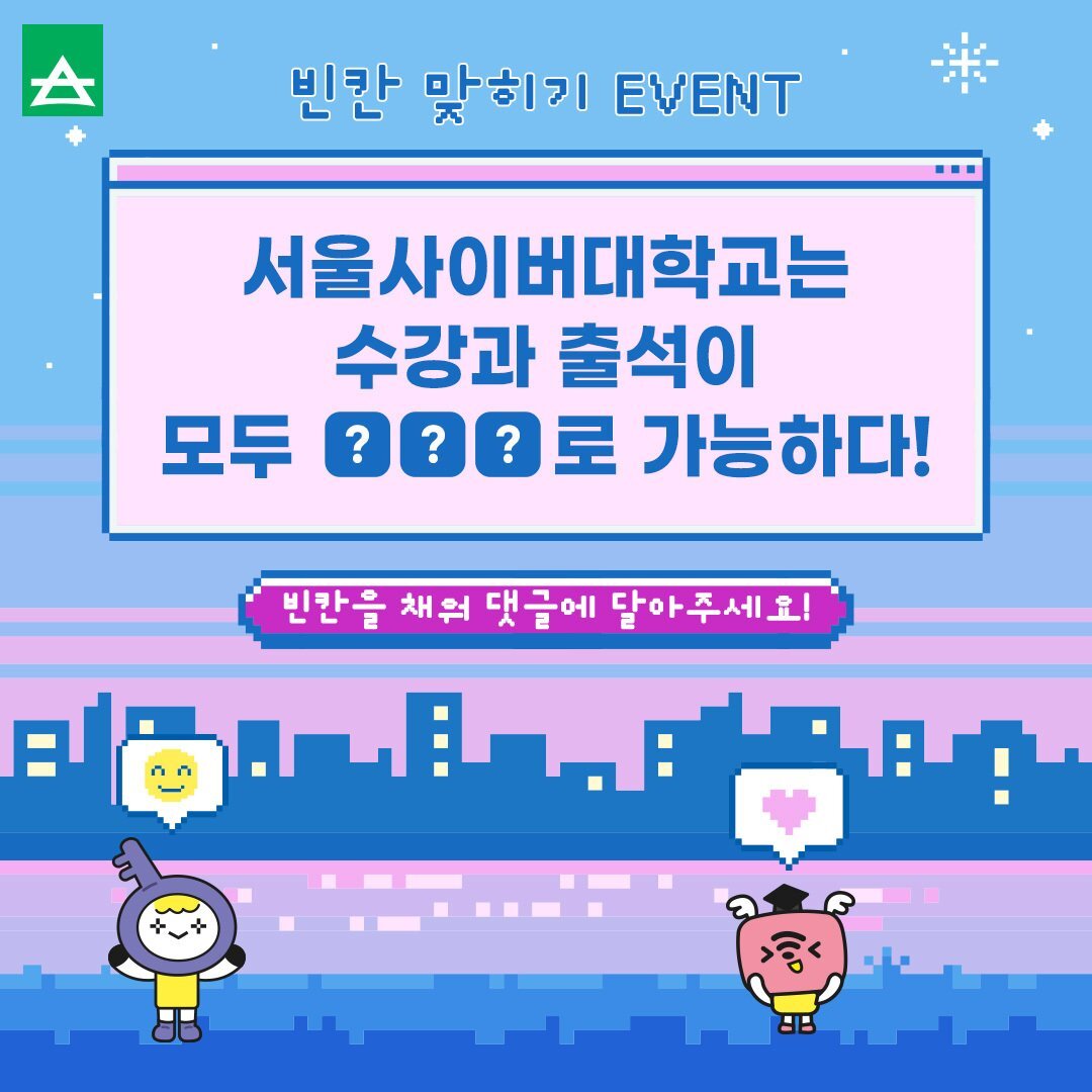 서울사이버대학교 학생들이라면 더욱 쉽게 맞히실 수 있겠죠?