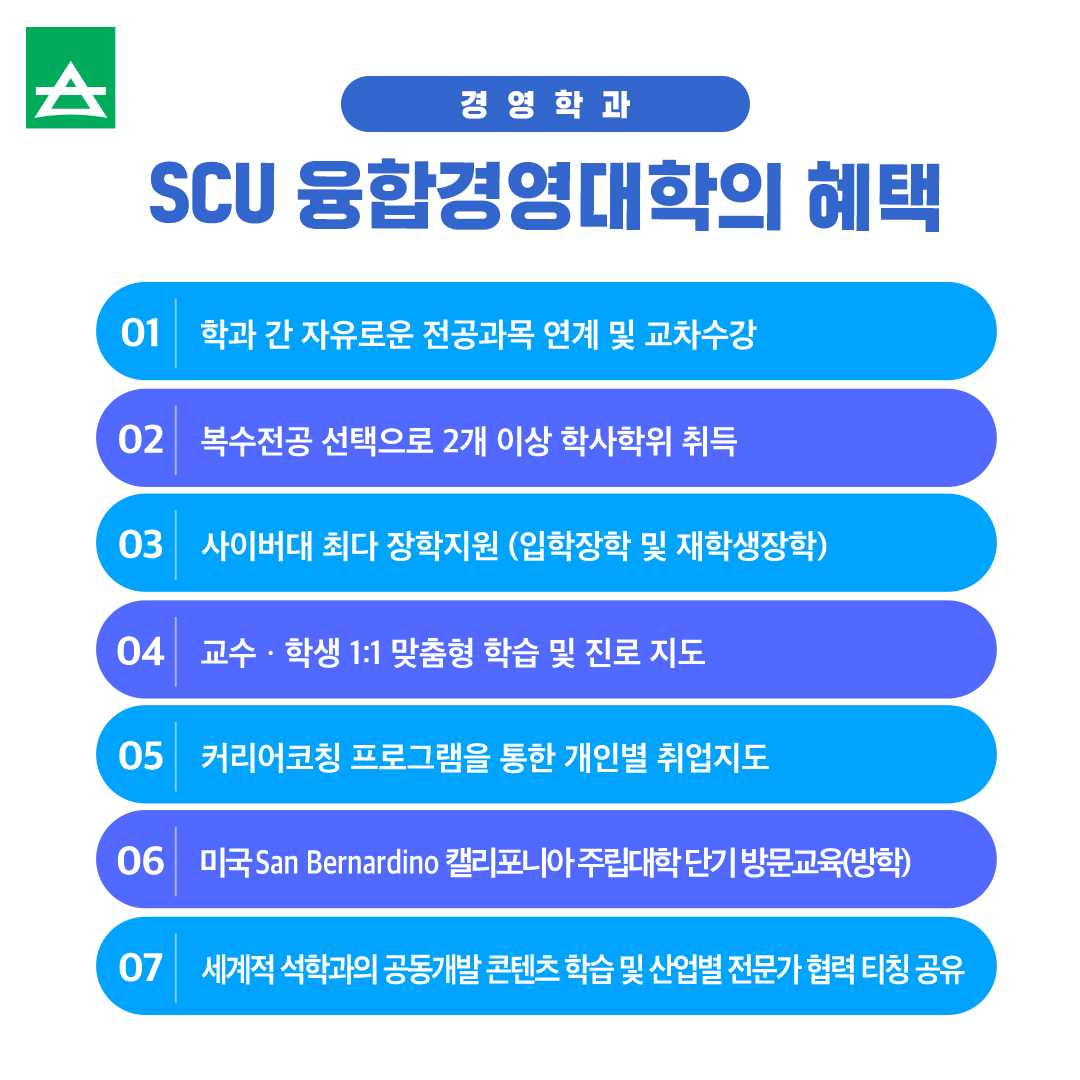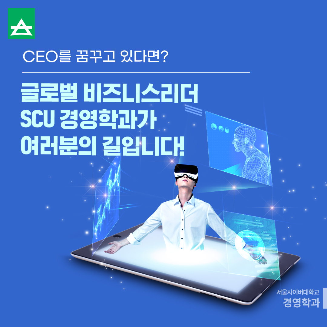 CEO를 꿈꾸고 있다면? 글로벌 비즈니스리더 SCU 경영학과가 여러분의 길입니다! 본문