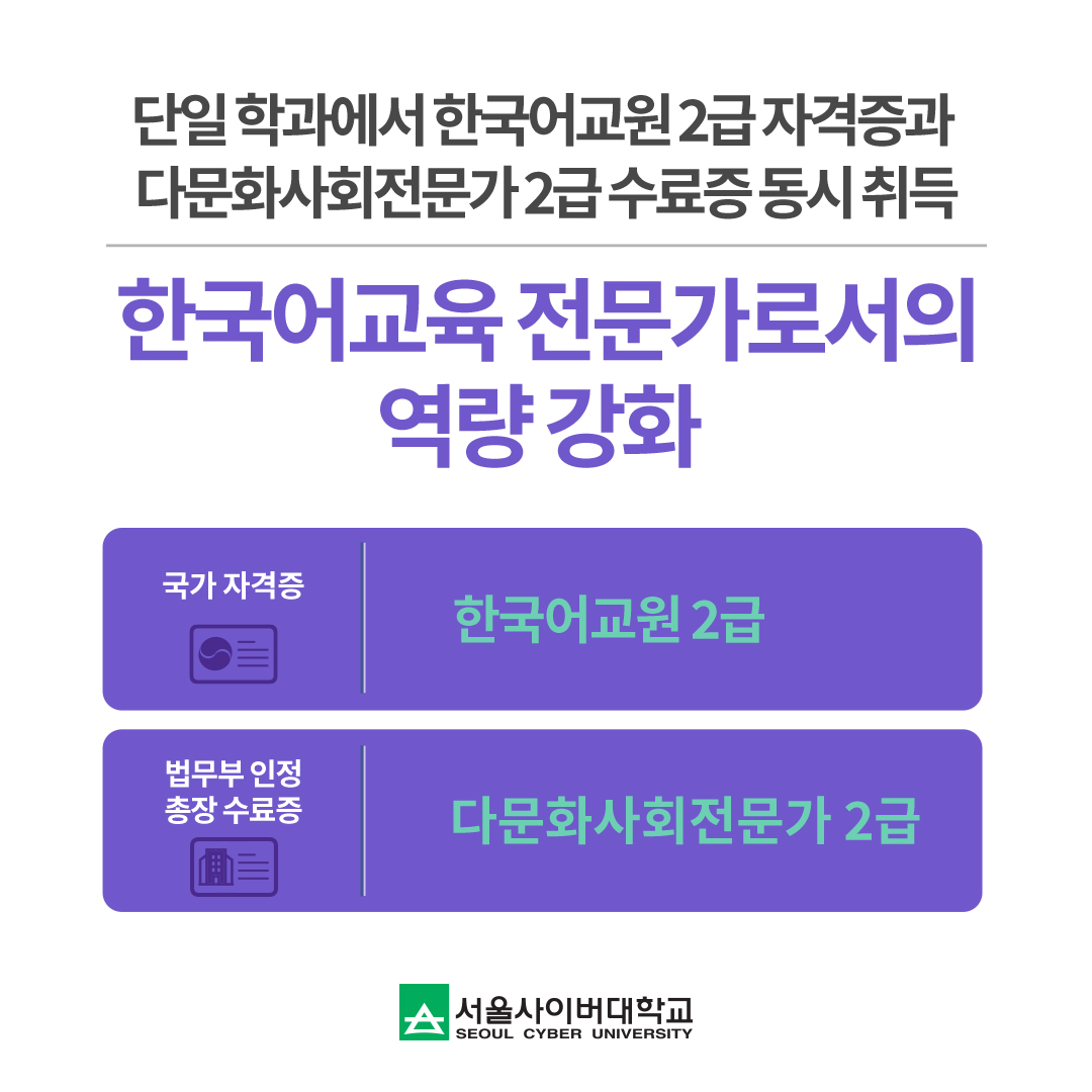 한국어교원과 다문화사회전문가 양성! 서울사이버대학교 한국어문화학과 본문
