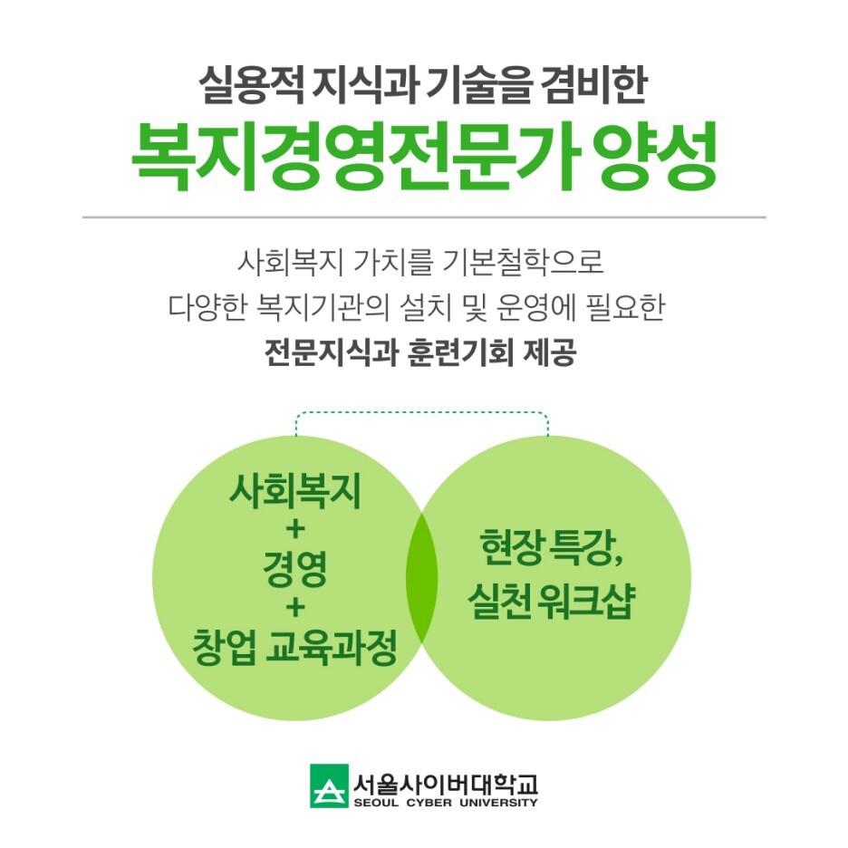 경영감각과 실무능력을 갖춘 복지경영 전문가가 되세요.