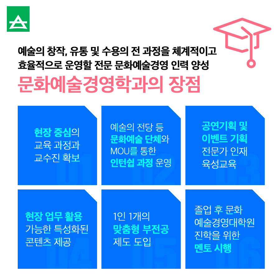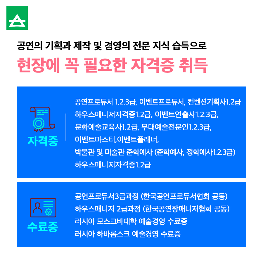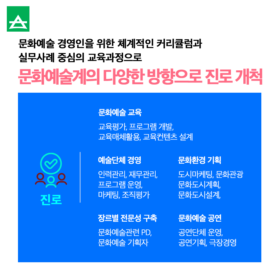 문화예술 전문 경영인의 꿈을 이뤄보세요.