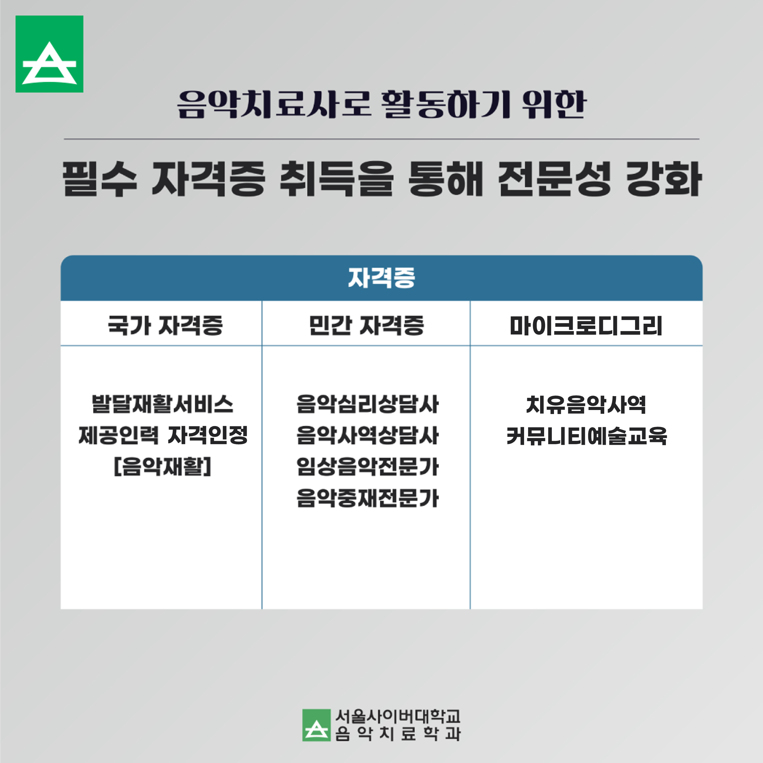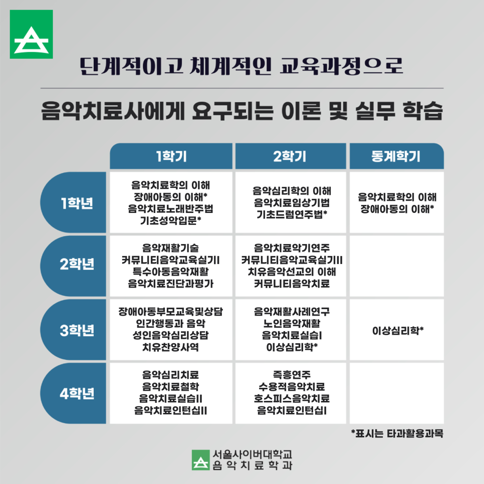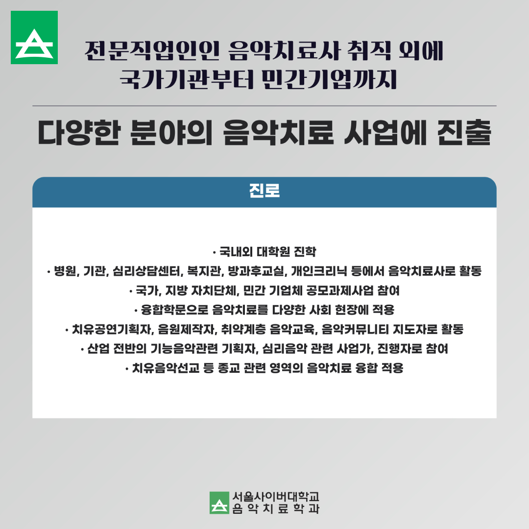 마지막으로 서울사이버대학교 음악치료학과에서는