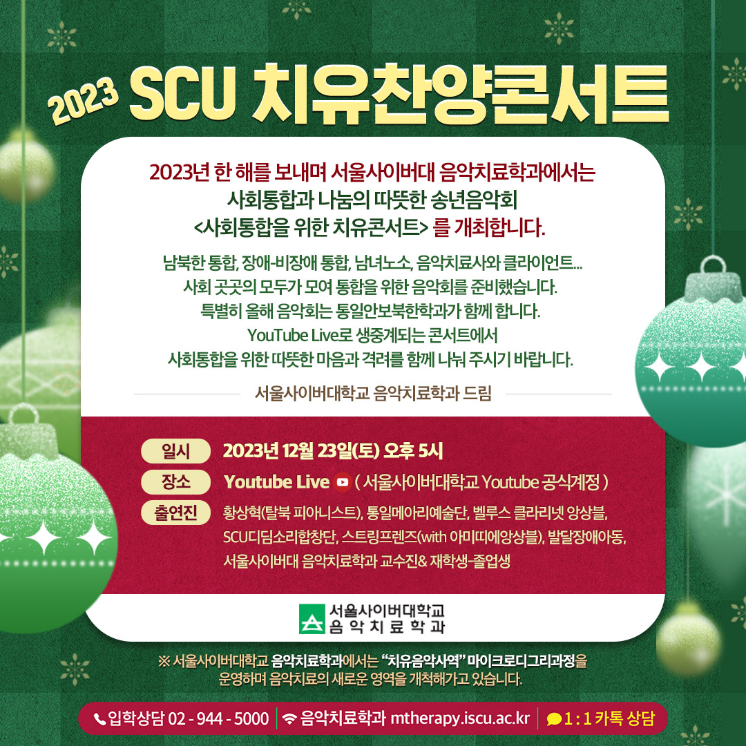 2023 SCU 치유찬양 콘서트 사회통합과 나눔의 따뜻한 송년음악회 본문