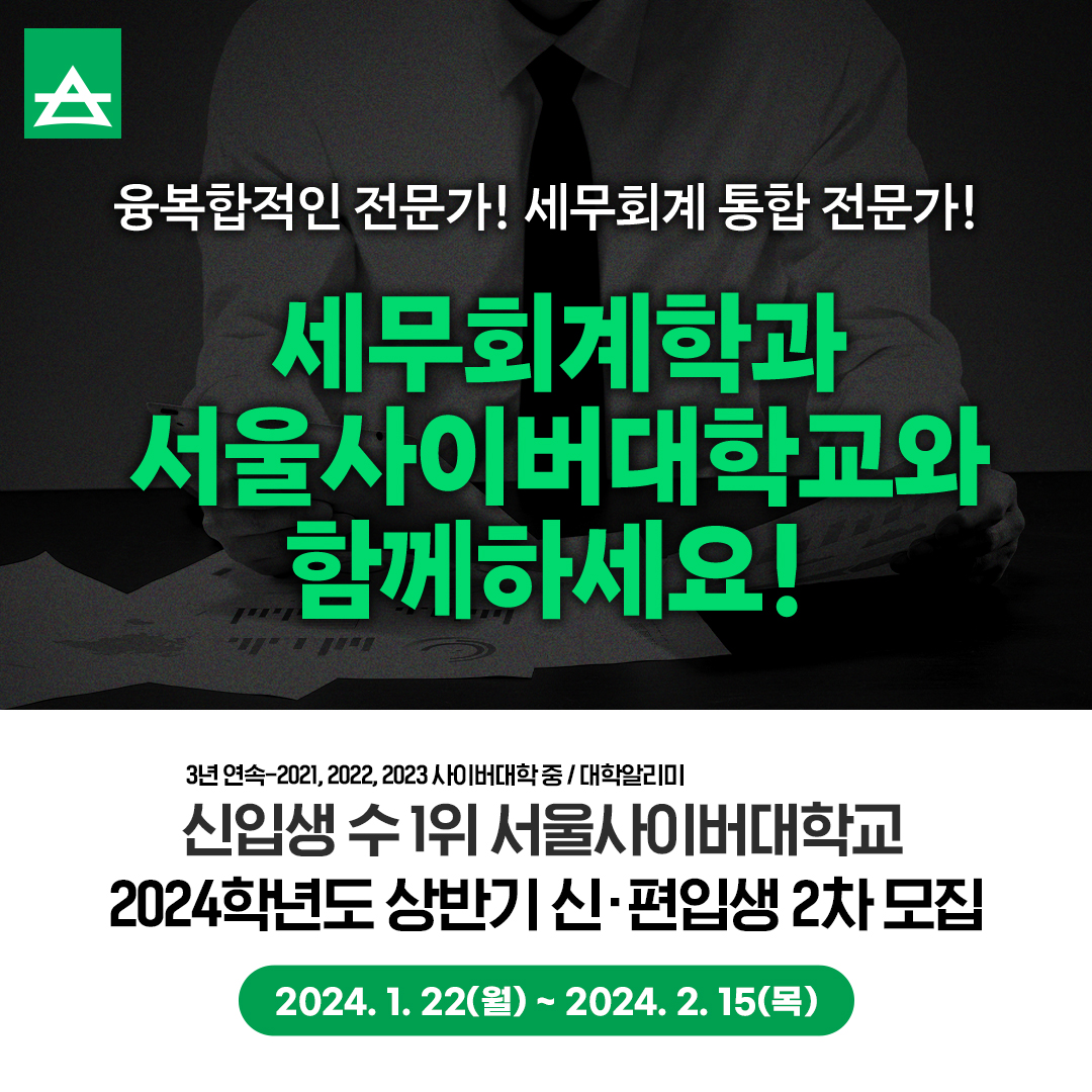 사이버대학교순위 브랜드평판 1위 서울사이버대학교, 세무회계학과 신입생, 편입생 2차모집 본문