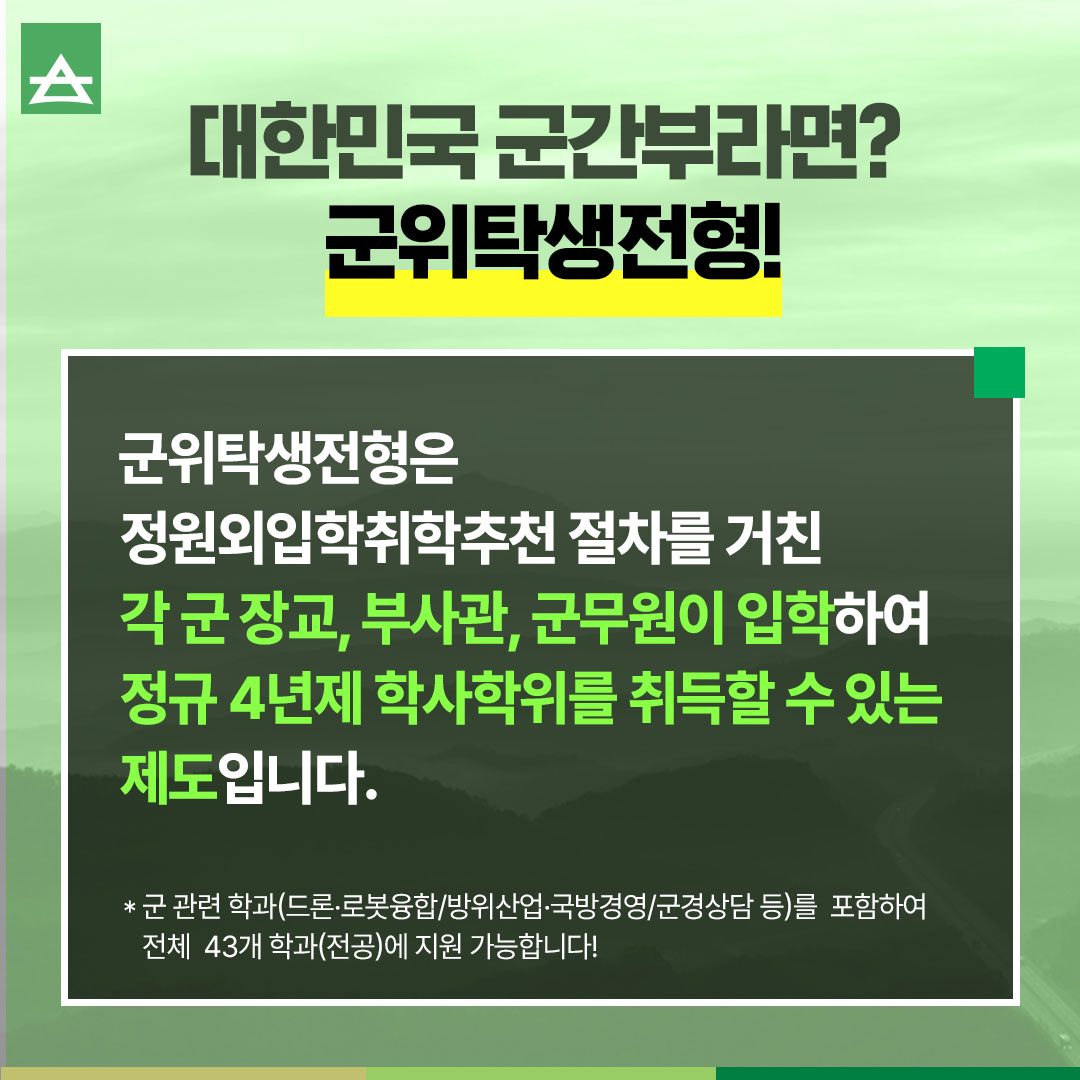 대한민국 군간부라면? 군위탁생전형!