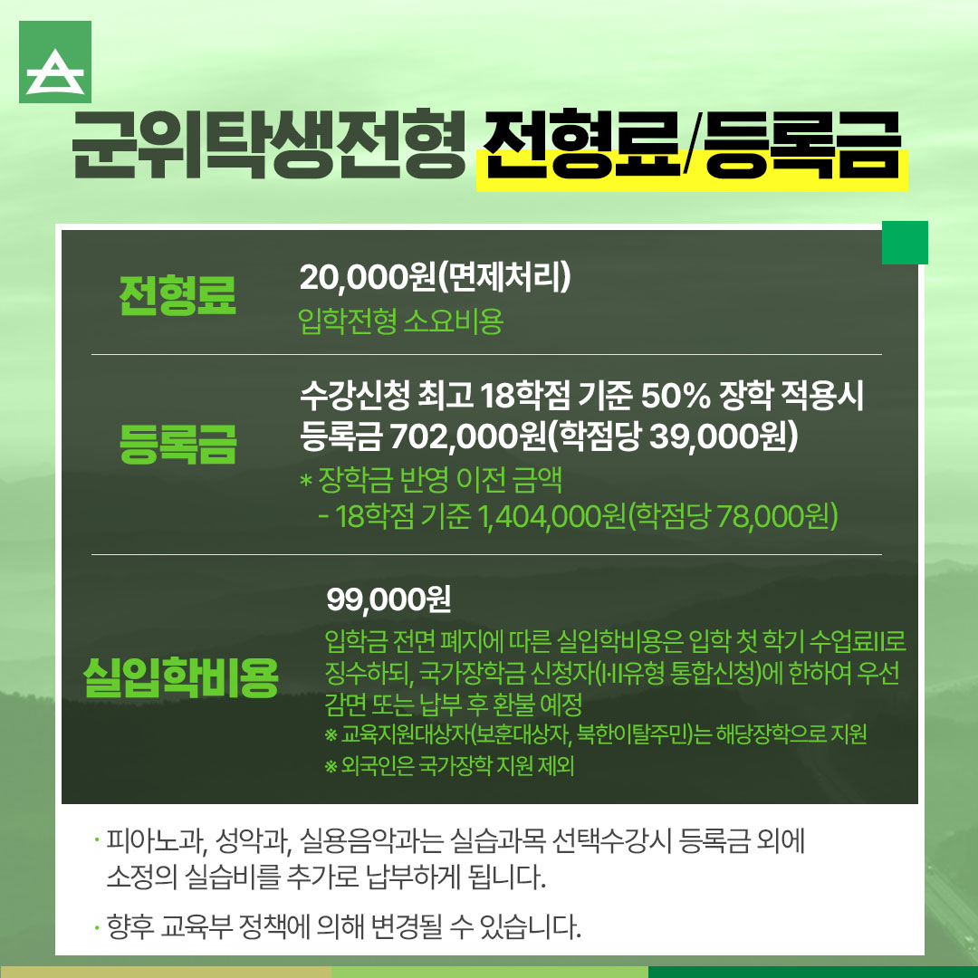 군위탁생전형 전형료/등록금