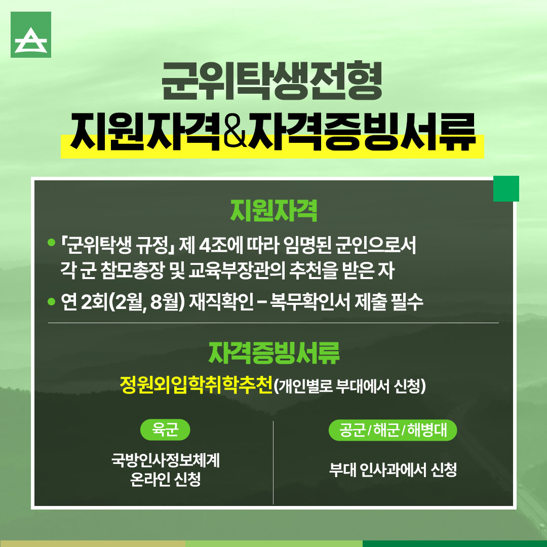군간부들을 위한 군위탁생전형 안내✅