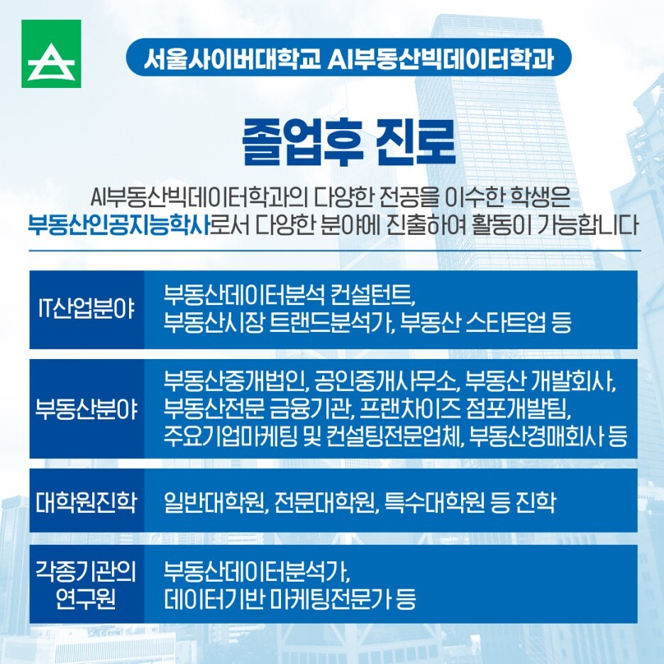 부동산인공지능학사로서 다양한 분야에 진출하여 활동이 가능합니다.
