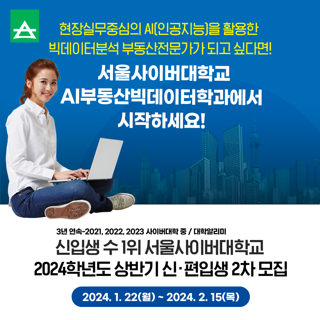 | 사이버대학교순위 3년 연속 가장 많은 신입생이 많이 선택한 서울사이버대학교 상반기 신·편입생 2차 모집마감 D-day17 (0) | 2024.01.29 |