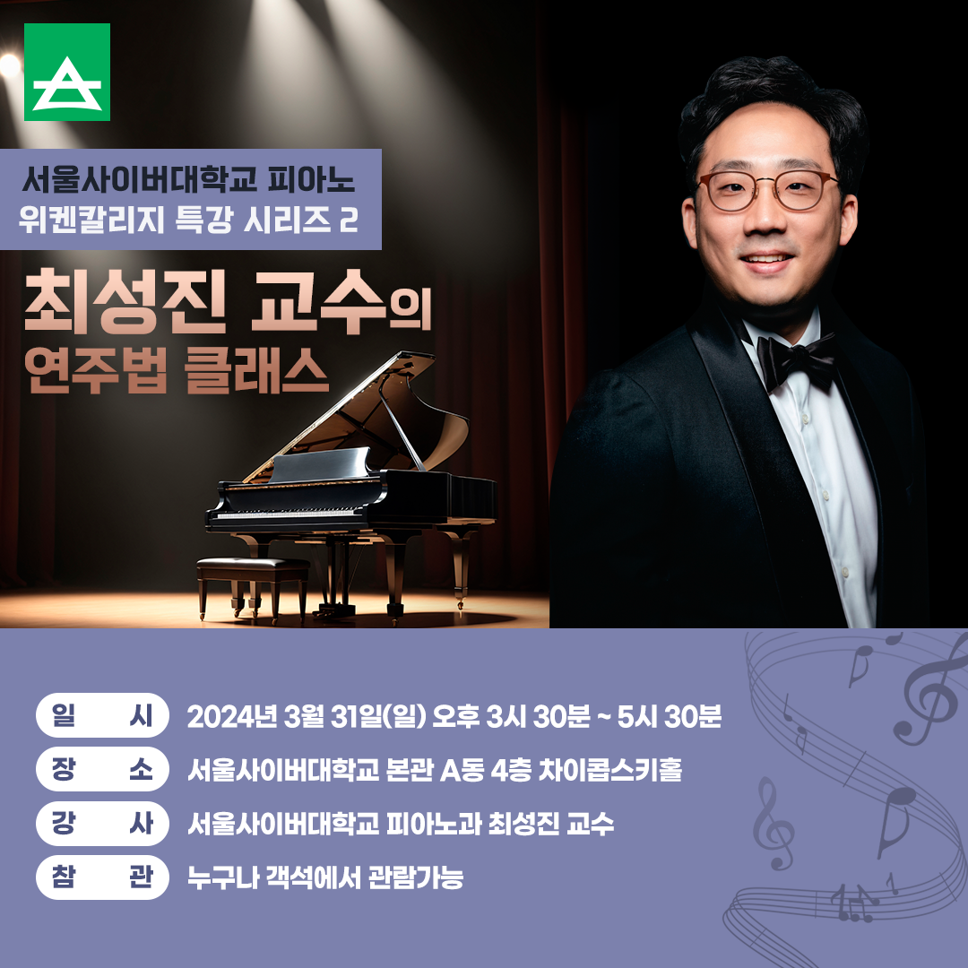 서울사이버대학교 피아노과 위켄칼리지 특강 시리즈2- 최성진 교수의 연주법클래스 본문