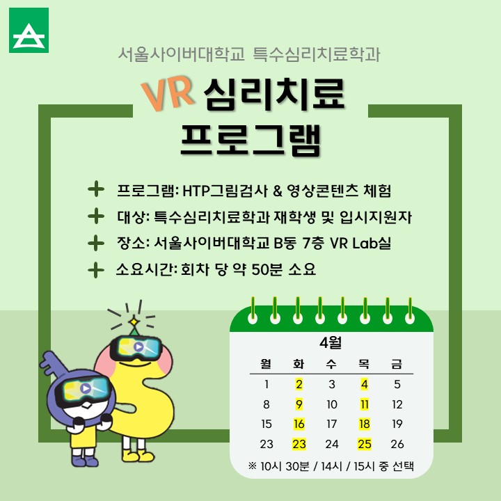 서울사이버대학교 특수심리치료학과 - VR 심리치료 프로그램 본문