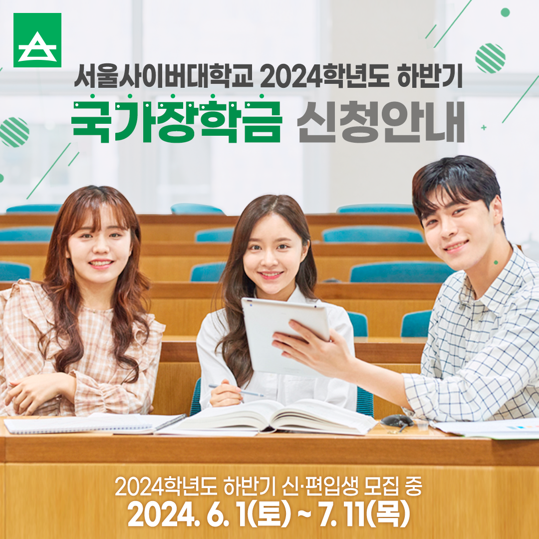 | 사이버대학 NO.1 서울사이버대학교 2024학년도 하반기 신·편입생 모집 (0) | 2024.06.01 |