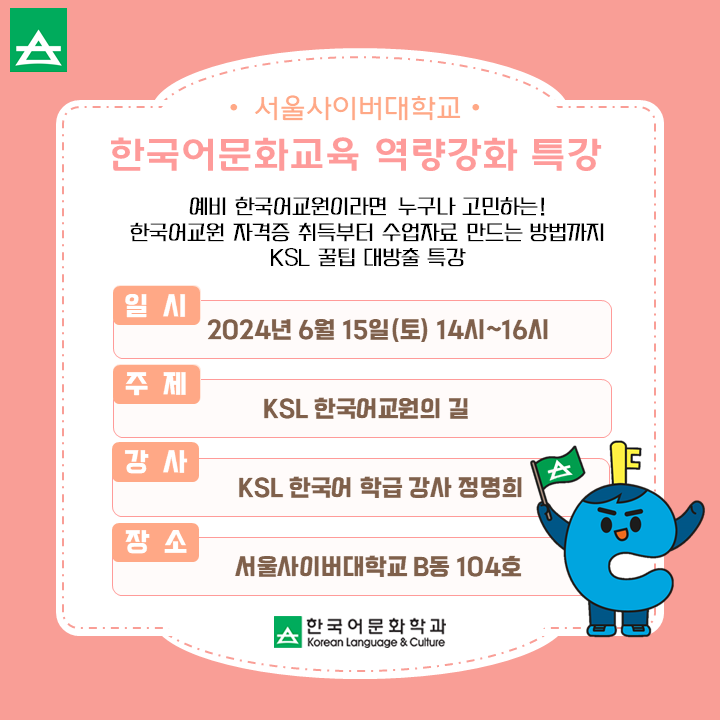 서울사이버대학교 한국어문화학과 – <KSL 한국어교원의 길> 진로 특강 본문