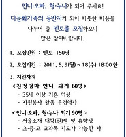 | 서울특별시자원봉사센터 다문화가족 [일촌맺기] 멘토링 봉사단을 모집합니다. (0) | 2011.05.16 |