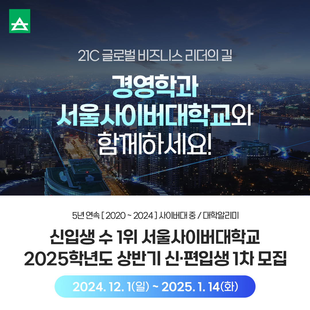 | 서울사이버대학교가 2025년 최고의 선택인 20가지 이유! Check Point 20! (4) | 2024.12.27 |