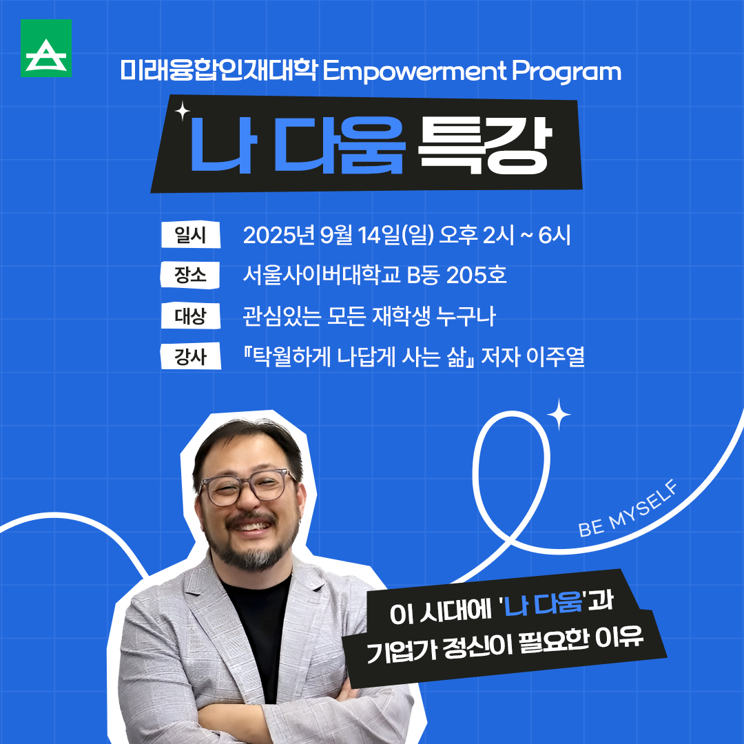 서울사이버대학교 미래융합인재대학 임파워먼트 프로그램 나 다움 특강 본문