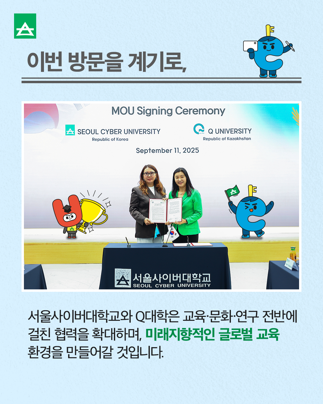 서울사이버대학교 카자흐스탄 Q대학과 업무협약 체결! 본문