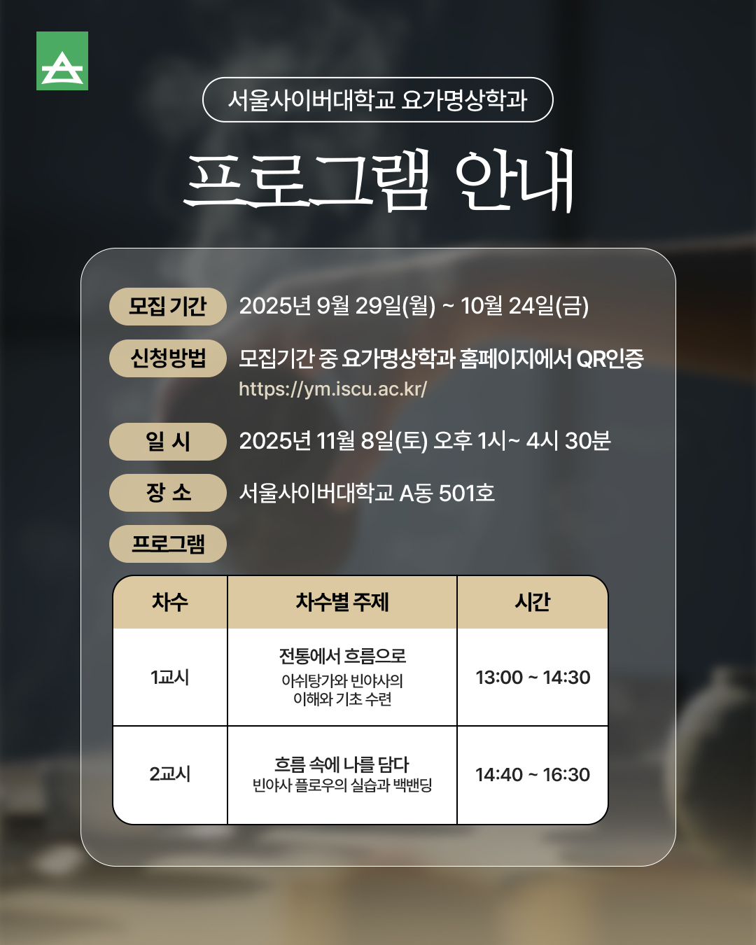 • 신청방법: 모집기간 중 요가명상학과 홈페이지에서 QR인증