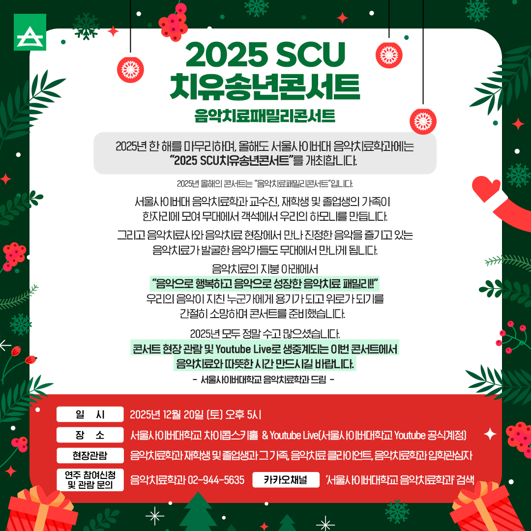 〈2025 SCU 치유송년콘서트〉를 개최합니다.