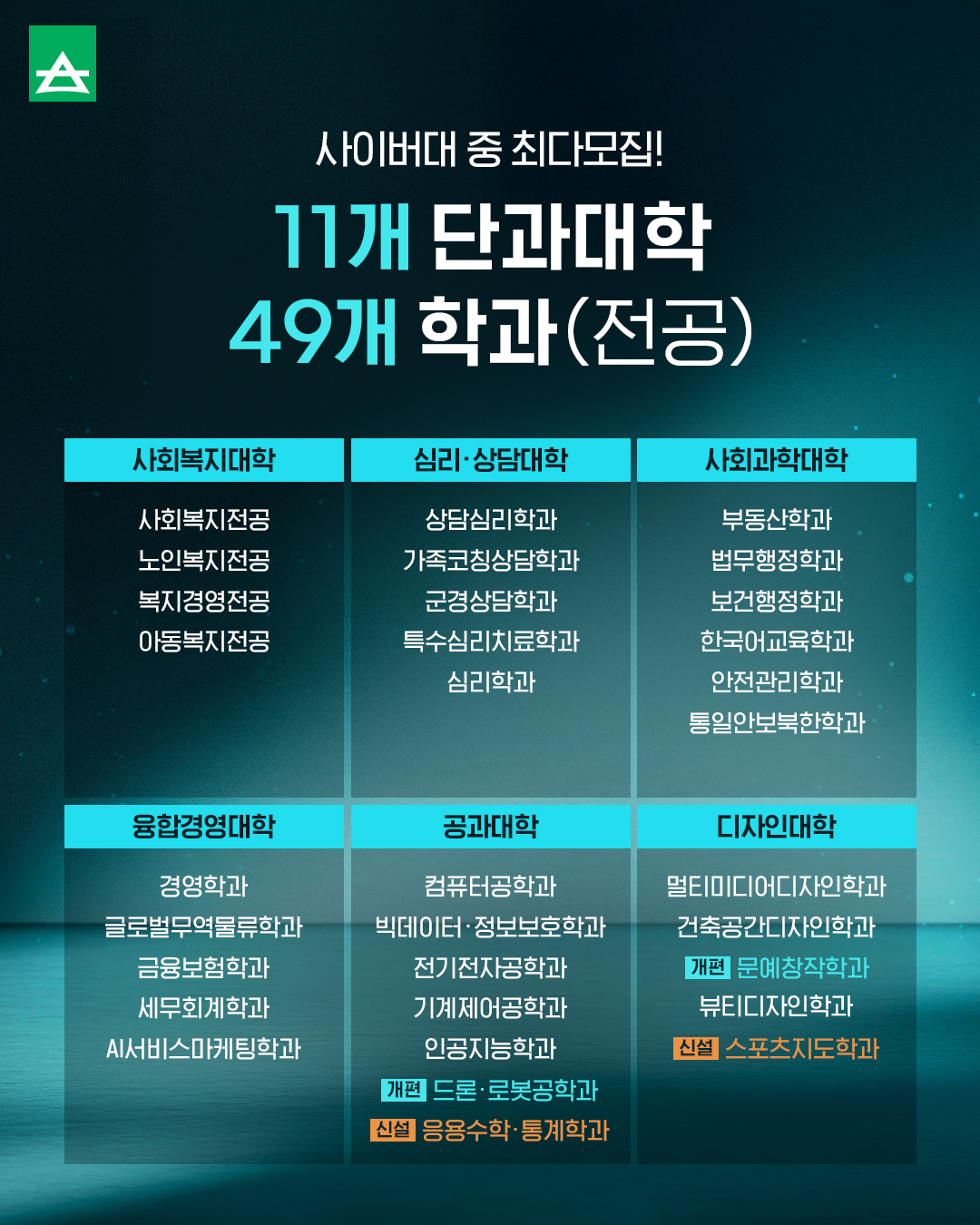 사이버대 중 압도적! 최다모집 49개 학과(전공)