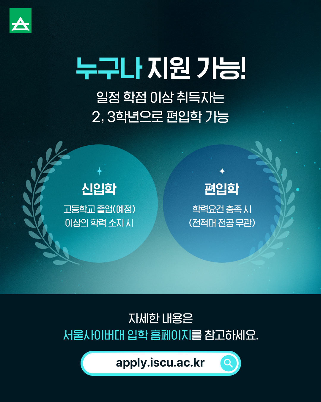 6년 연속 가장 많은 신입생이 선택한 NO.1 사이버대학, 서울사이버대학교! 2026학년도 상반기 신·편입생 모집 시작!