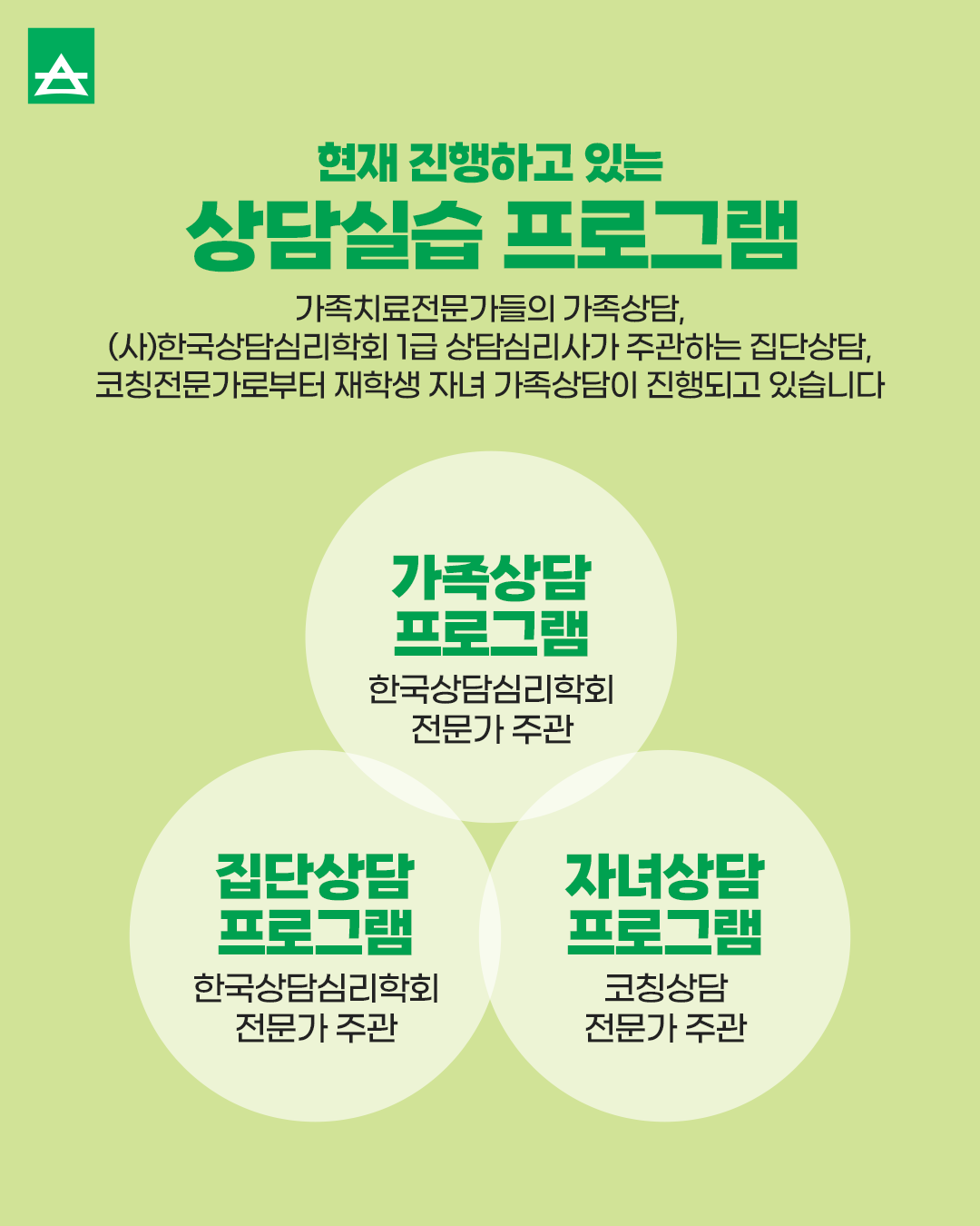 · 상담체험과 실습 프로그램을 통한 개인의 빠른 성장과 가족의 회복을 경험 Fast!