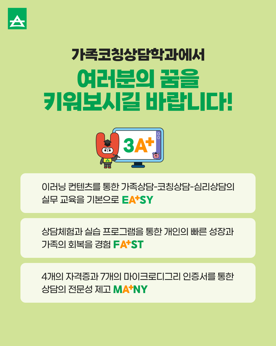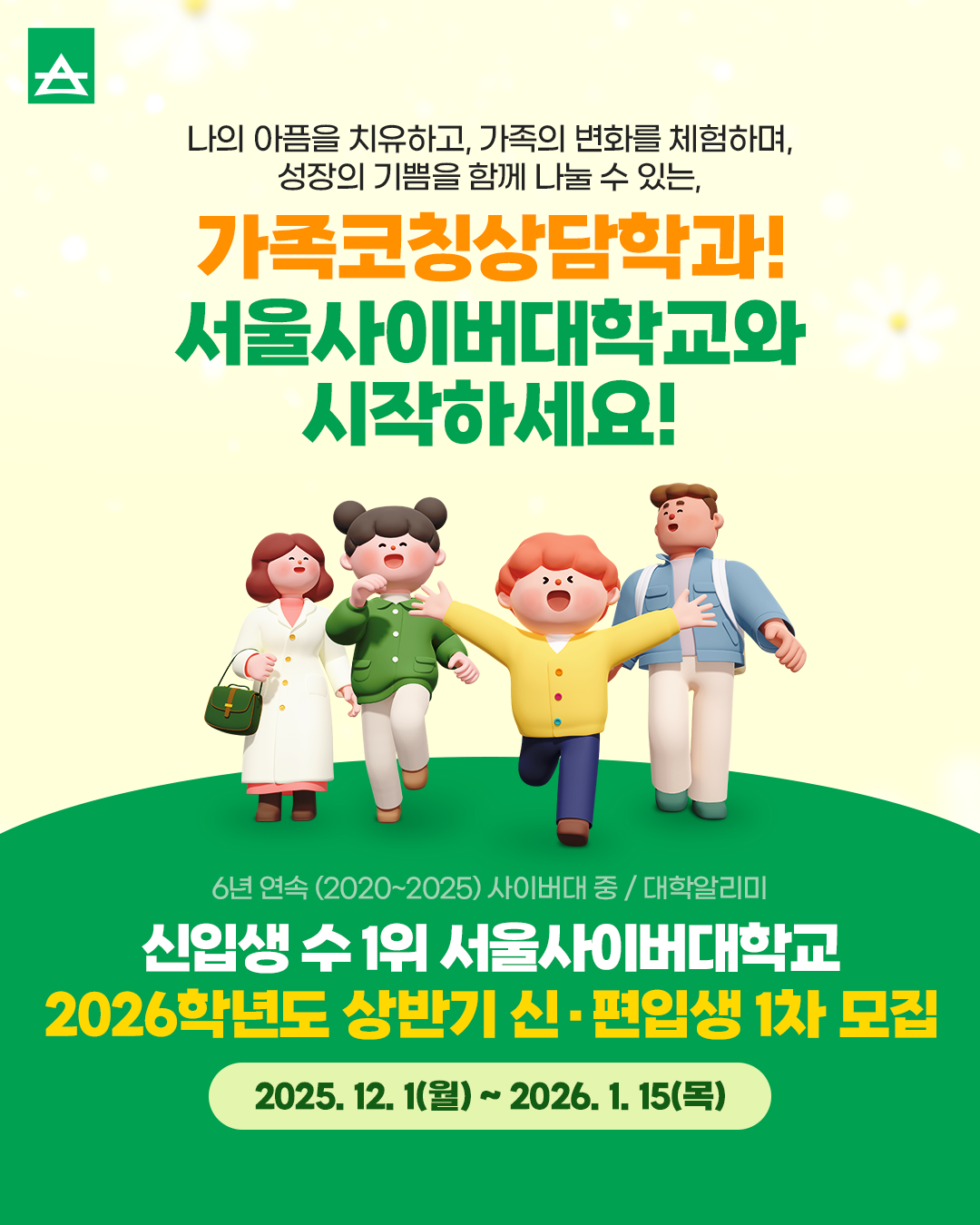 나의 아픔을 치유하고, 가족의 변화를 체험하는 서울사이버대학교 가족코칭상담학과! 본문