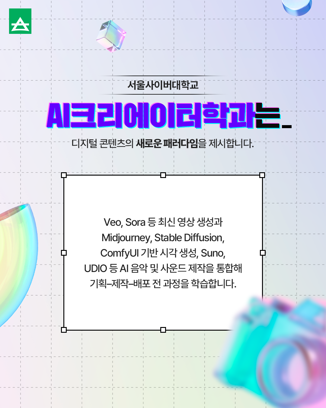 지금 서울사이버대학교 AI크리에이터학과에서 시작해 보세요.