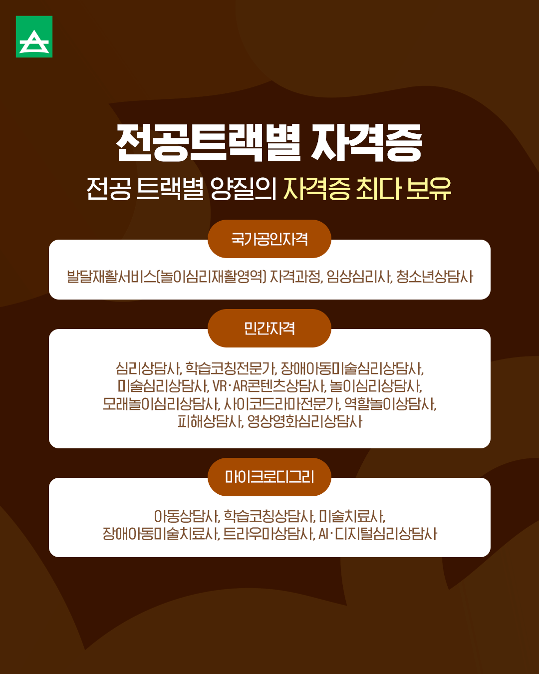 전공 트랙별 양질의 자격증도 최다 보유 중이라